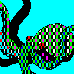Xtal Soft have to be lauded for the graphics, though. The world map view and wireframe dungeons may not be too special, but the game contains a ton of detailed enemy graphics. I hardly got anywhere in this game, and still met more than 20 different enemies.